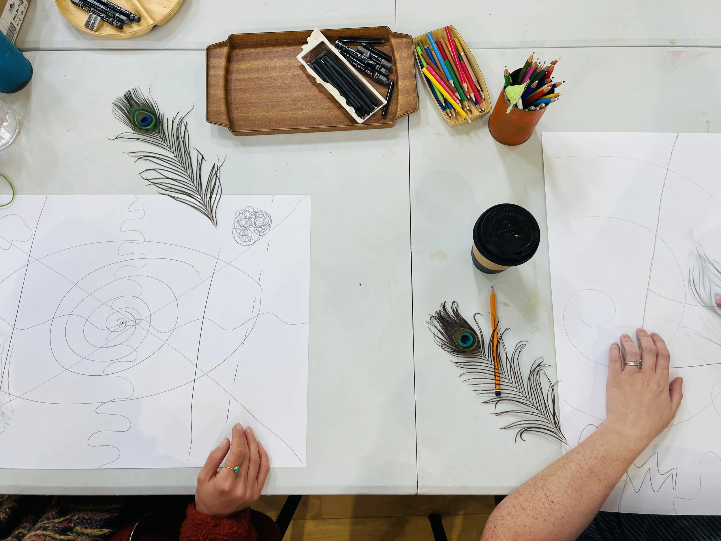 Shadow drawing - drawing under fluorescent lights casts shadows - we worked with it.